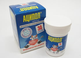 - С профилактической целью Аципол назначают по 1 капсуле 1 раз/сут в течение 10-15 дней.