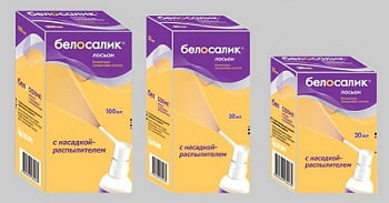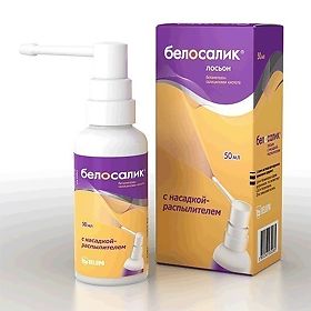 - Препарат Белосалик лосьон в форме раствора для наружного применения особенно удобен для использования на коже волосистой части головы. Раствор легко распределяется по поверхности кожи, не склеивает и не высушивает волосы, не оставляет видимых следов, оказывает охлаждающее действие на кожу.