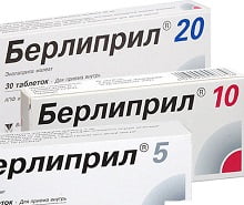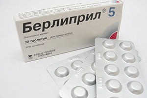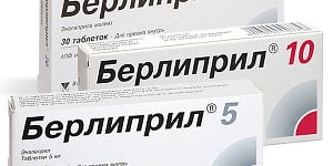 - При одновременном применении Берлиприла с солями лития возможно замедление выведения лития (показан контроль концентрации лития в плазме крови ).