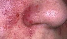 - Себорейный — заболевание, вызванное дрожжеподобным грибком. Однако данный вид кожного заболевания не заразен. Он имеет хроническое течение, и наиболее часто проявляется на коже лица (лбу, носу, на границе роста волос, бровях, ушах).
