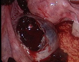 В некоторых случаях лапароскопическая картина не позволяет определить причину разрыва яичника, а лишь устанавливает его наличие. Противопоказаниями к проведению лапароскопии служат выраженный хронический спаечный процесс и большое кровотечение (геморрагический шок и потеря сознания). При наличии таковых приходится прибегать к стандартному лечебно-диагностическому способу — лапаротомии.
